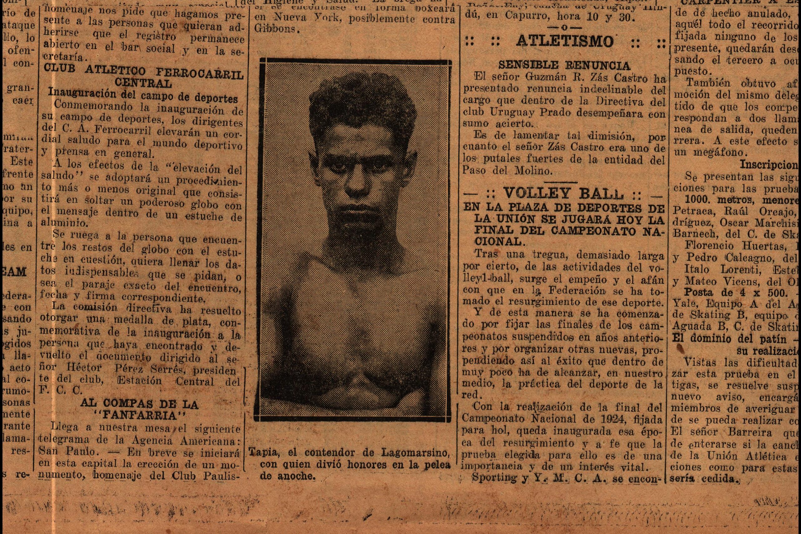 En: “Afilando los puños”, El Pueblo, año VII, N° 2822, Montevideo, martes 13 de febrero de 1940, p. 8. [Directores: Raúl Jude y Juan Antonio Buero]. Disponible en Hemeroteca de Palacio Legislativo.