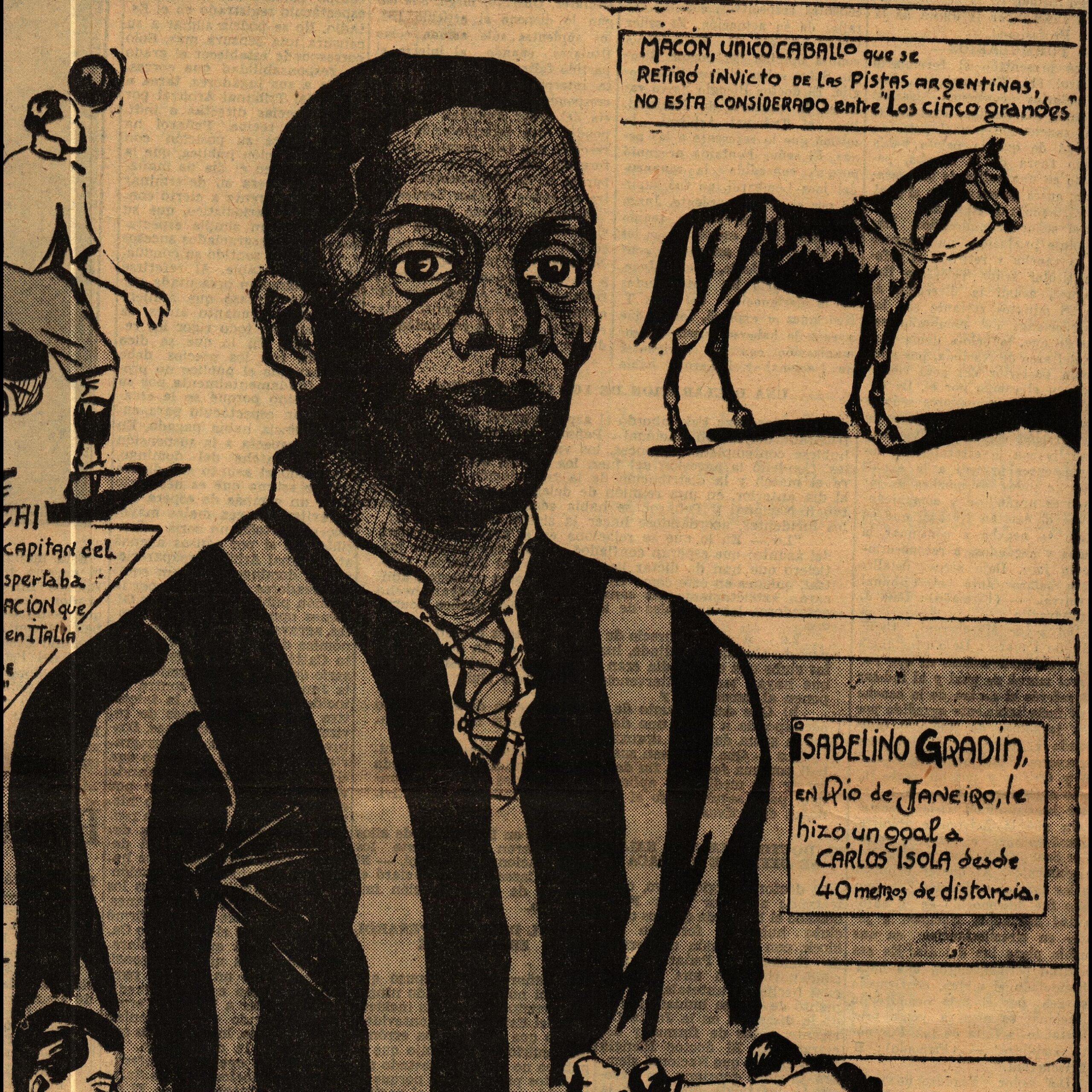 Isabelino Gradin, en Río de Janeiro, le hizo un goal a Carlos Isola desde 40 metros de distancia. En: El Ideal, año XV, n° 5676, Montevideo, miércoles 30 de mayo de 1934, p. 4. Disponible en Hemeroteca de Palacio Legislativo.